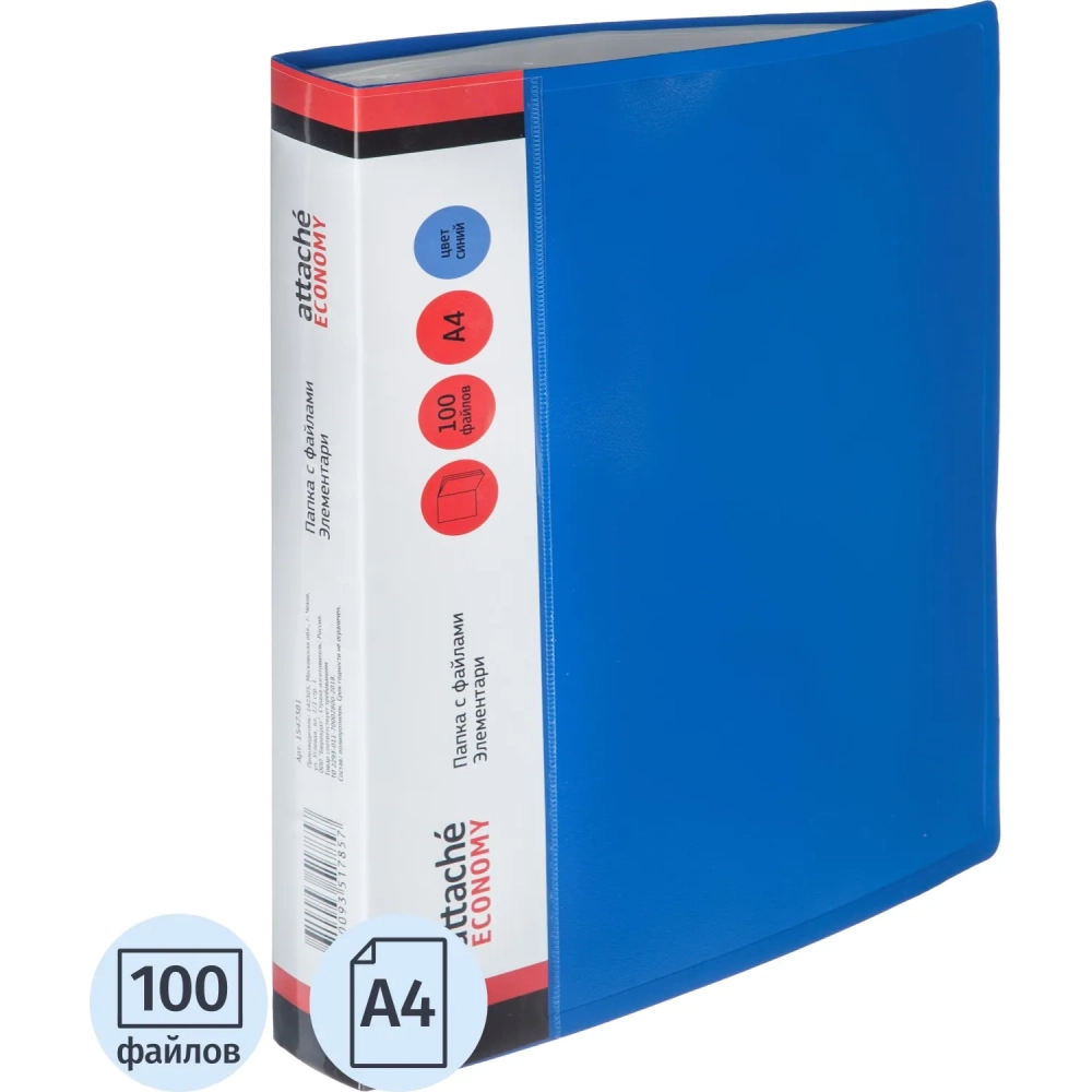 Папка файловая 100 файлов, карман/кор Элемент А4 800мкм син