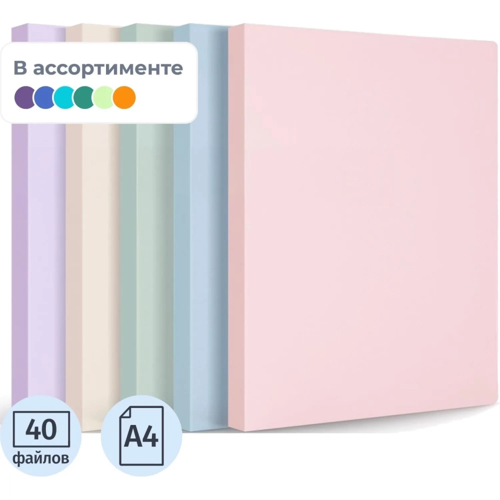 Папка файловая с 40 прозрачными файлами A4 РР 0,7мм в ассортименте 72673