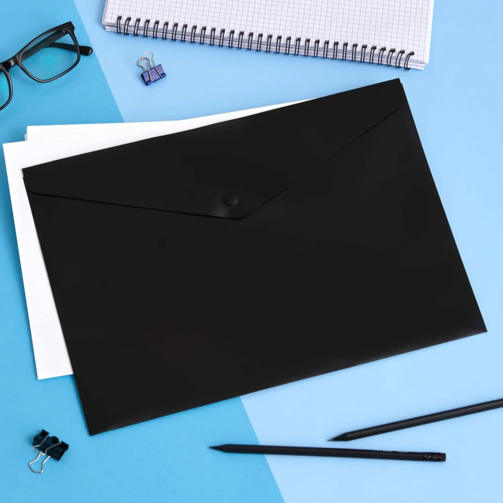 Папка-конверт на кнопке Attache А4, пл 180 мкм, 10шт/уп, черная непрозр