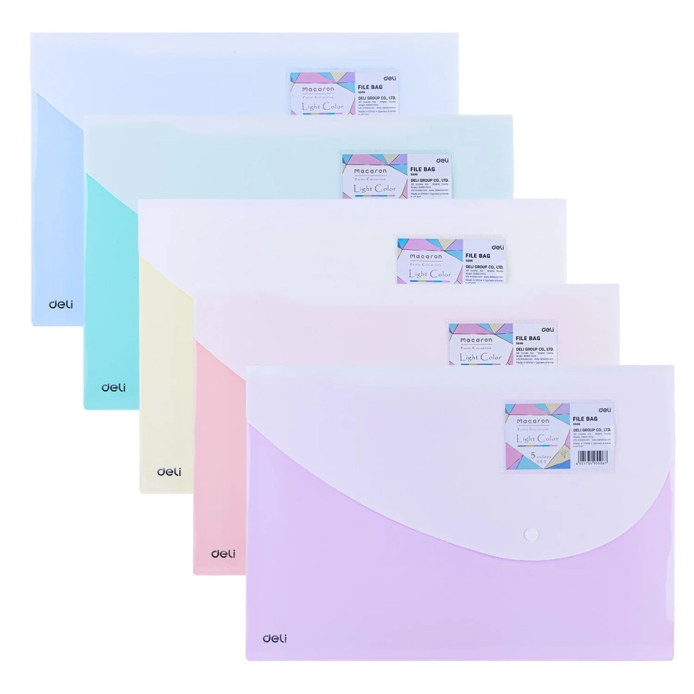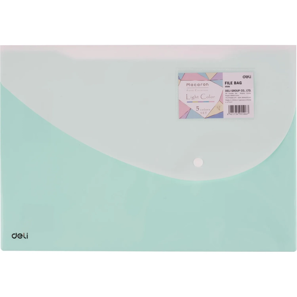Папка-конверт на кнопке Deli А4+, 180мкм,карман,цвет в асс, 5506