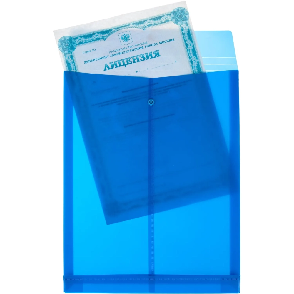 Папка-конверт на кнопке вертик с расшир Attache, А4, синий 180мкм 5шт/уп