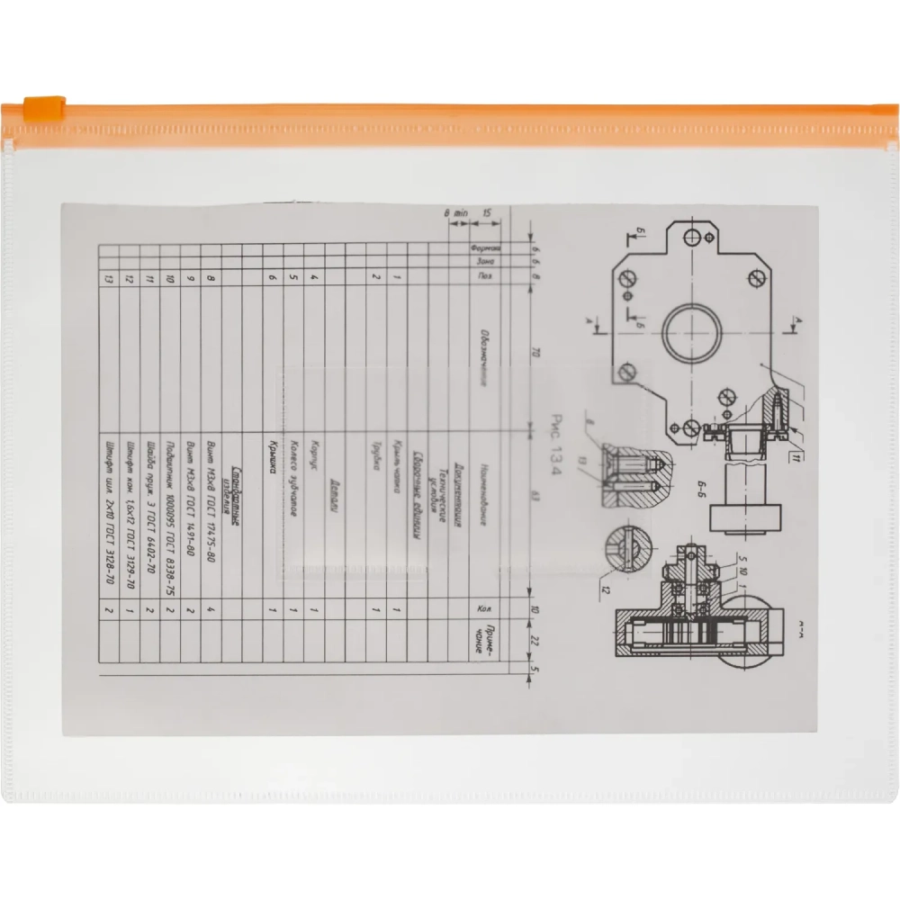 Папка-конверт на молнии А5 150мкм прозрачн.,с карманом д/визитки 10шт/уп