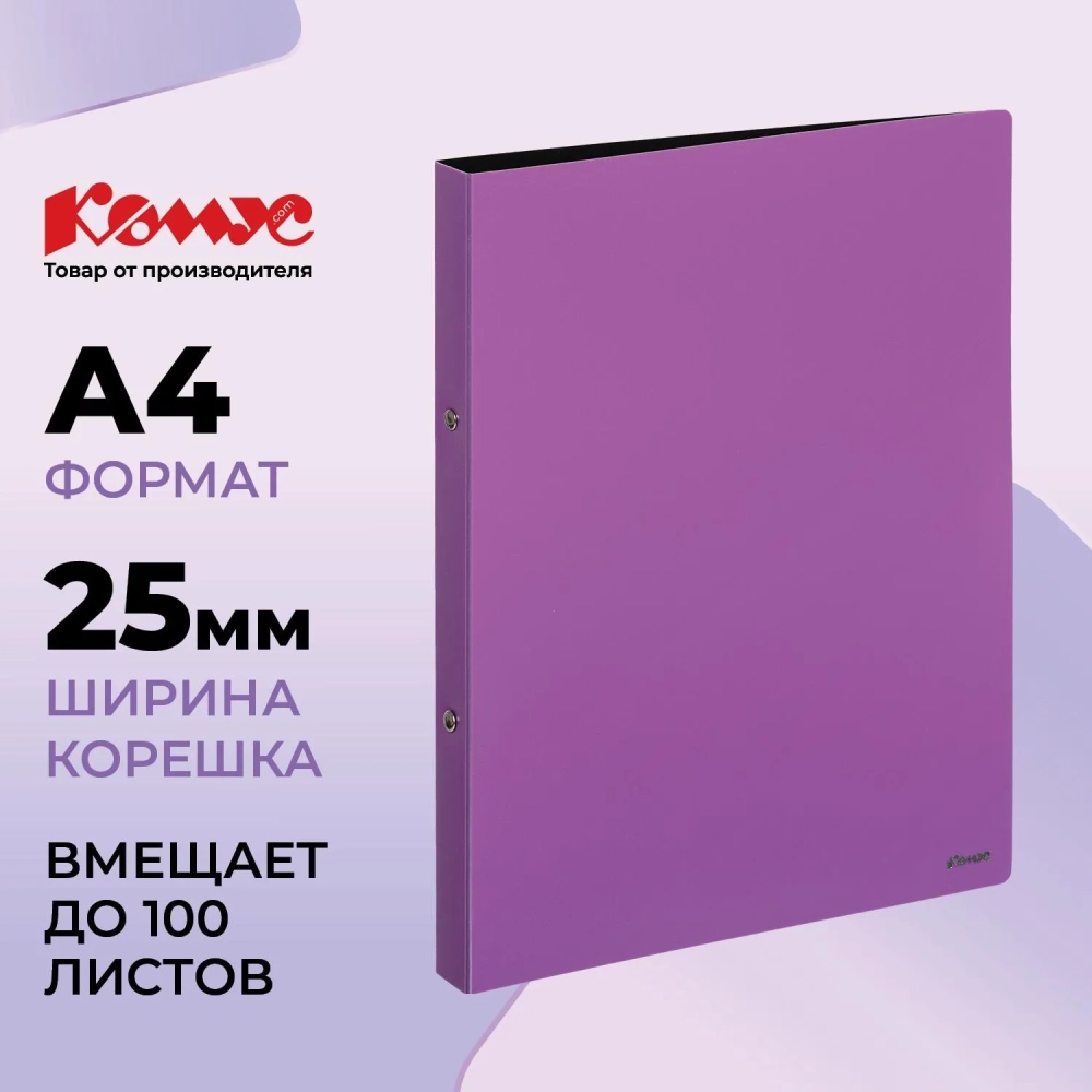 Папка на 2-х кольцах Комус,25 мм, сиреневая, с карманом СD/визитки