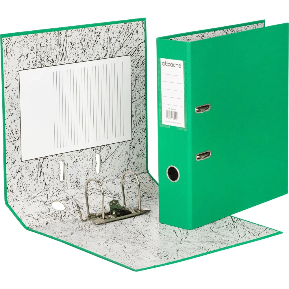 Папка-регистратор 75мм Attache А4, зеленая, РР/бумага без мет. уголка