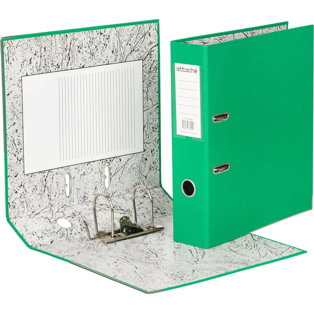 Папка-регистратор 75мм Attache А4, зеленая, РР/бумага, мет. уголок