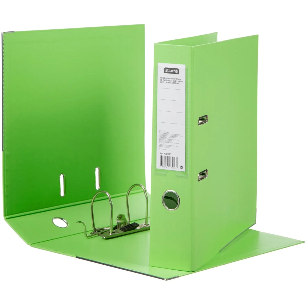 Папка-регистратор 75мм Attache салатовая ПБП2 метал кант карман корешок