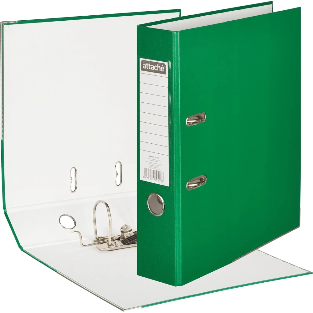 Папка-регистратор ATTACHE(ПВХ+бум)с мет.уголком,75мм,зеленая,ПБП1,карм.кор