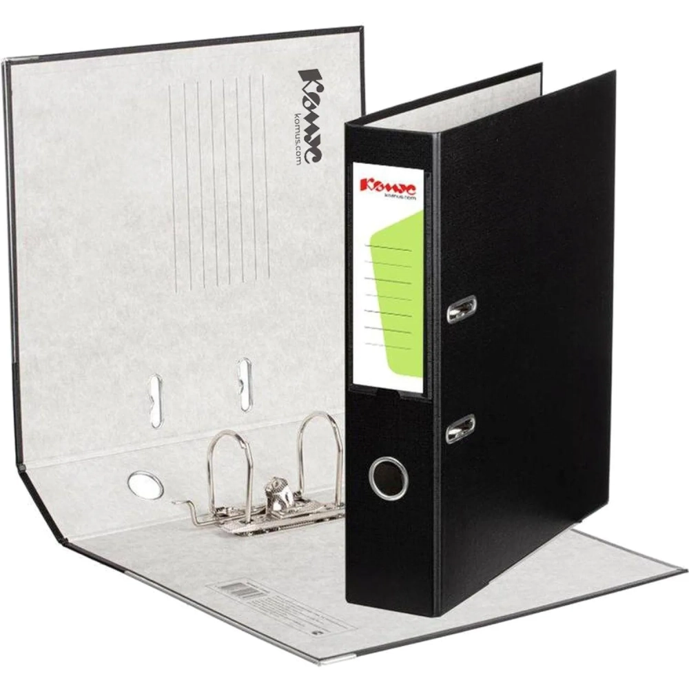 Папка-регистратор Комус Экономи 75мм черная, ПБП1, карм.кор., мет.уг