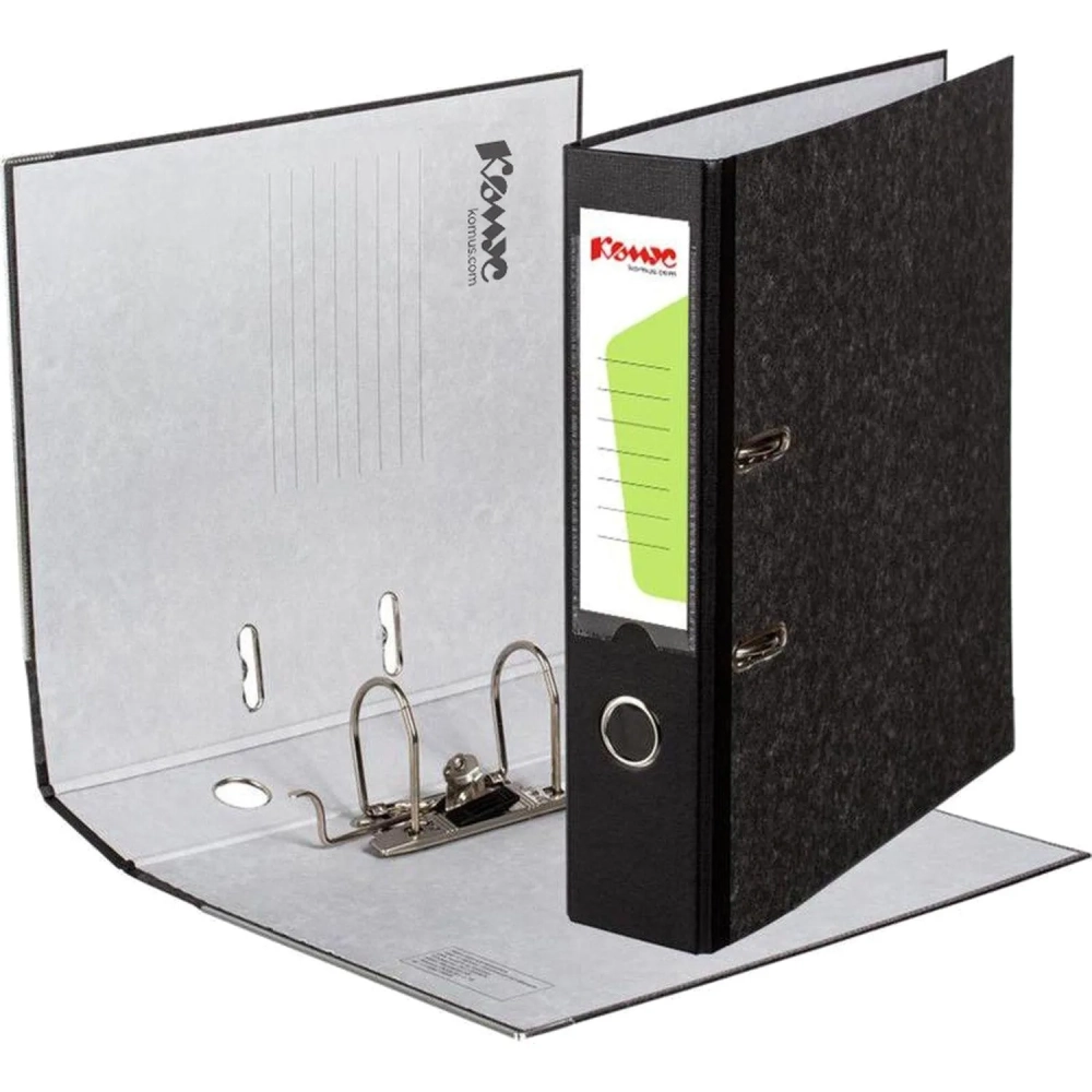 Папка-регистратор Комус мрамор.карт 75мм черн кореш,бум/бум,карм.кор,мет.уг