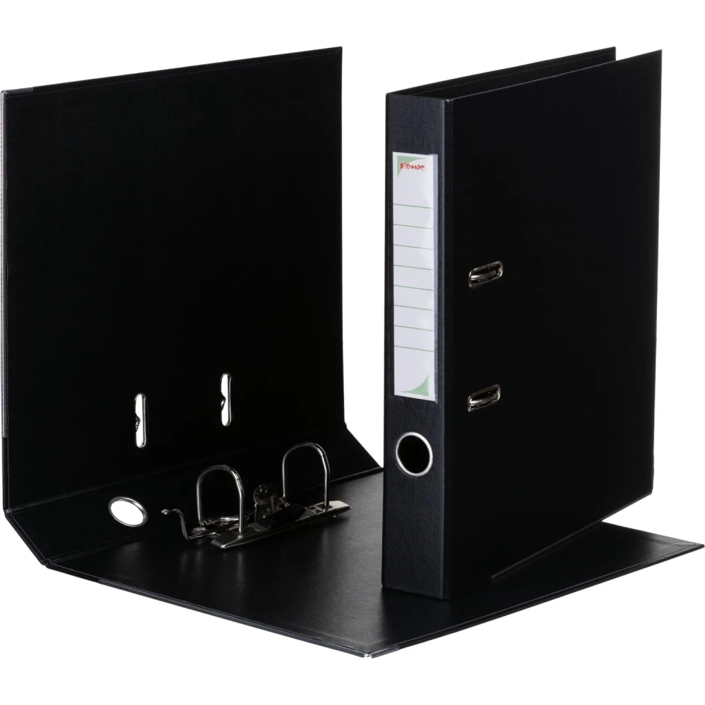 Папка-регистратор Комус Стандарт 50мм черная, ПБП2, карм.кор., мет.уг