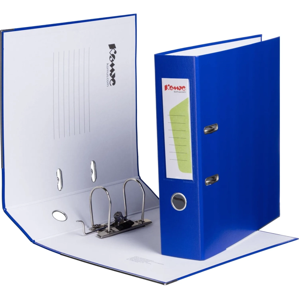 Папка-регистратор с арочн.мех.Комус Экономи 80мм,синяя,ПБП1,карм.кор,мет.уг