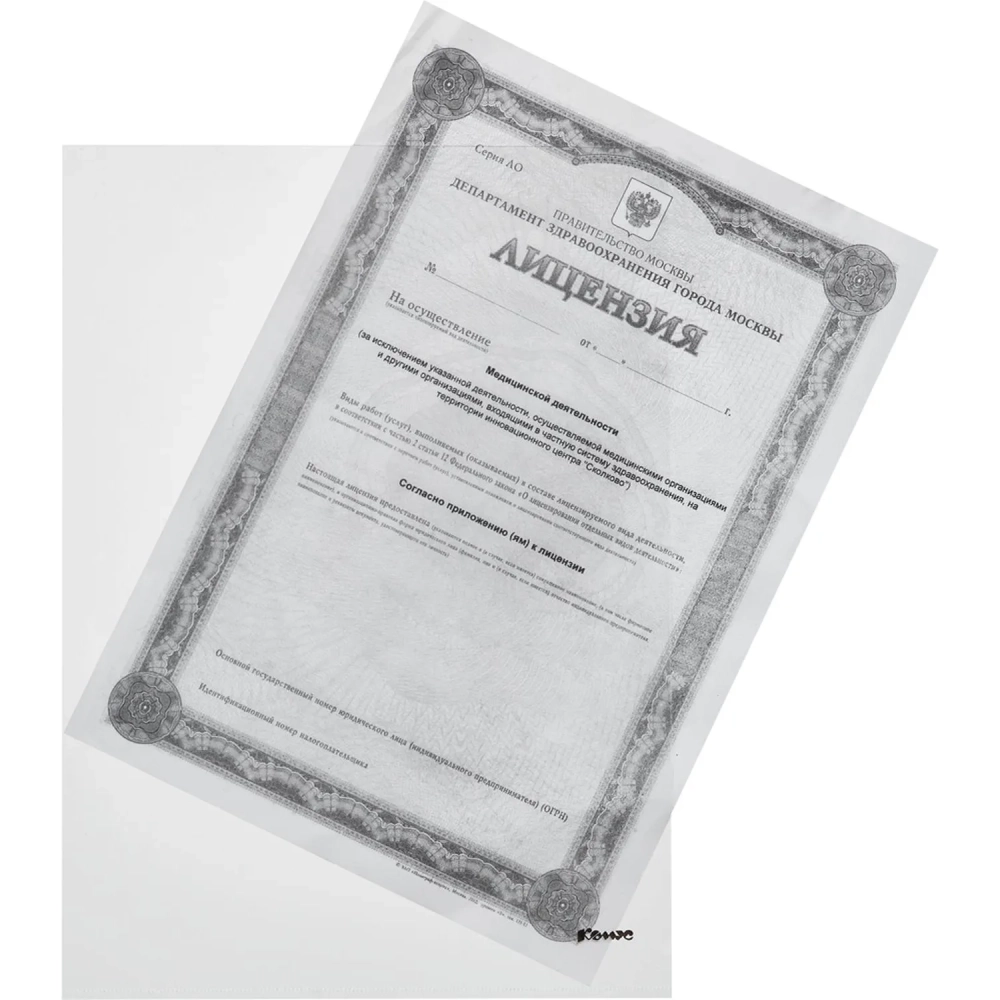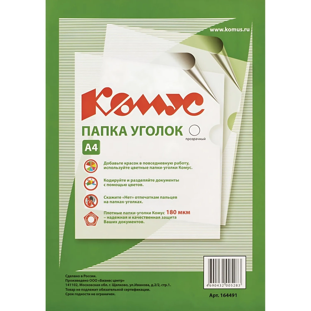 Папка уголок Комус А4 180мкм (прозрачный)