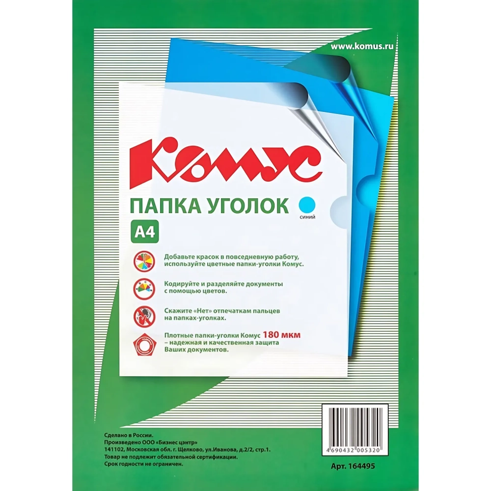 Папка уголок Комус А4 180мкм (синий)