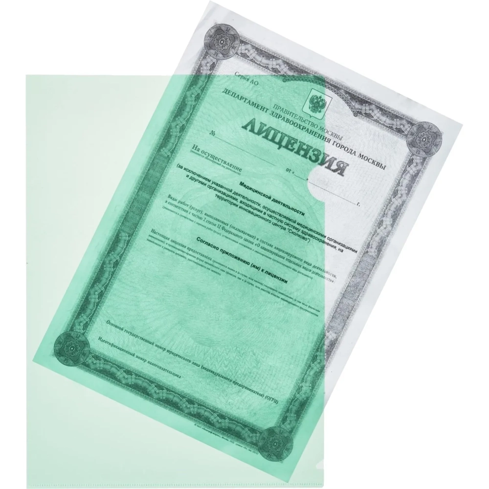 Папка уголок п/э цв. E-100/334T зеленая Россия 10 шт/уп