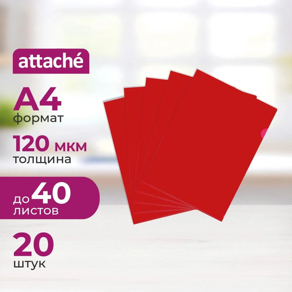 Папка уголок ПУ-001-ПП 120мкр жест.пластик А4 красная прозр 20 шт/уп