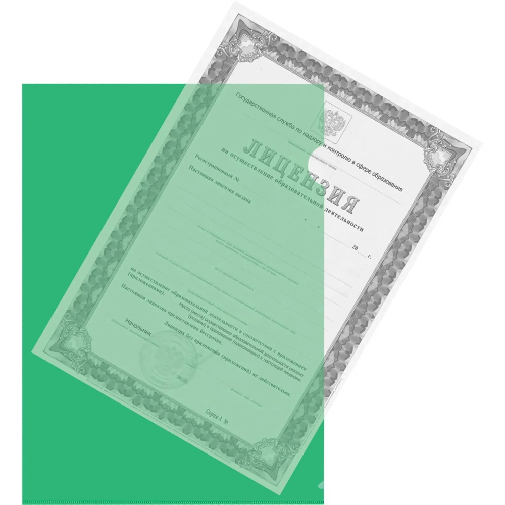 Папка уголок ПУ-001-ПП 120мкр жест.пластик А4 зеленая прозр 20шт/уп