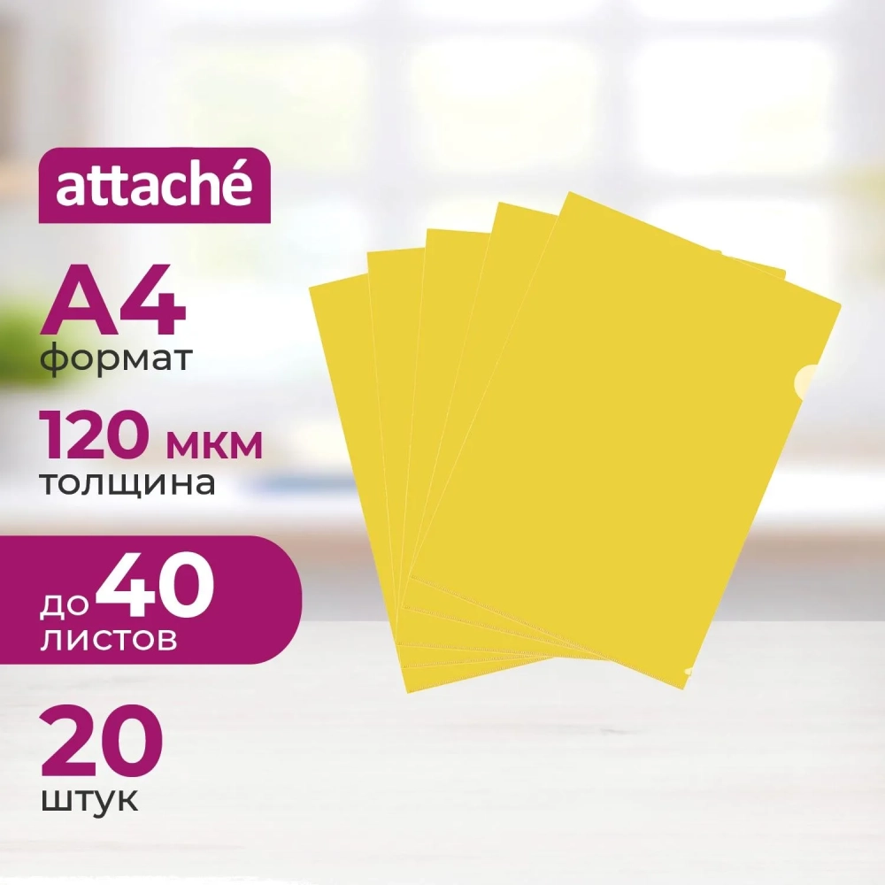 Папка уголок ПУ-001-ПП 120мкр жест.пластик А4 желтая прозр. 20 шт/уп