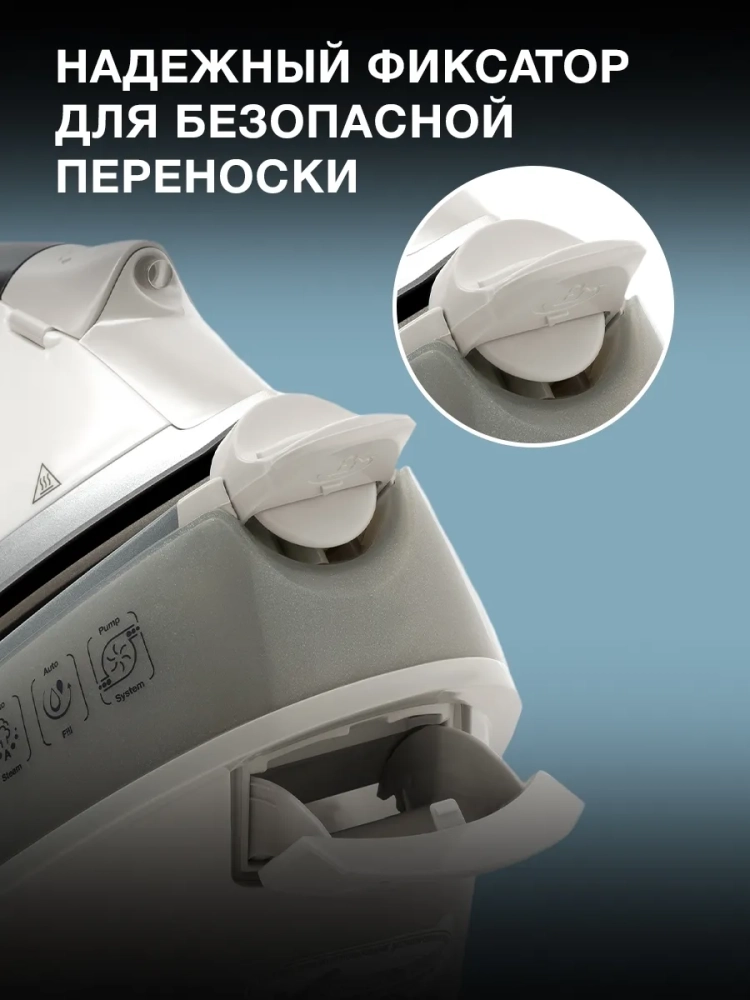 Парогенератор Hyundai H-SSP2600 — это современный и мощный прибор для эффективного и бережного разглаживания складок на одежде и предметах интерьера. Его ключевой особенностью является высокая производительность пара (110 г/мин) и два резервуара для воды: основной объёмом 1,32 литра в подставке и дополнительный на 200 мл в самом утюге, что в совокупности с системой автоматической подачи воды обеспечивает длительную непрерывную работу без частых доливов. Устройство мощностью 2600 Вт оснащено керамической подошвой, которая обеспечивает легкое скольжение, и обладает широким набором интеллектуальных функций. К ним относятся защита от накипи со сменным картриджем, режим самоочистки, автоматическое отключение при бездействии (через 30 секунд в горизонтальном и 8 минут в вертикальном положении), а также Eco-режим для экономии энергии. Парогенератор поддерживает вертикальное отпаривание, позволяя освежить одежду или шторы без гладильной доски, и имеет электронную панель управления с подсветкой для удобного выбора температурного режима под любой тип ткани.