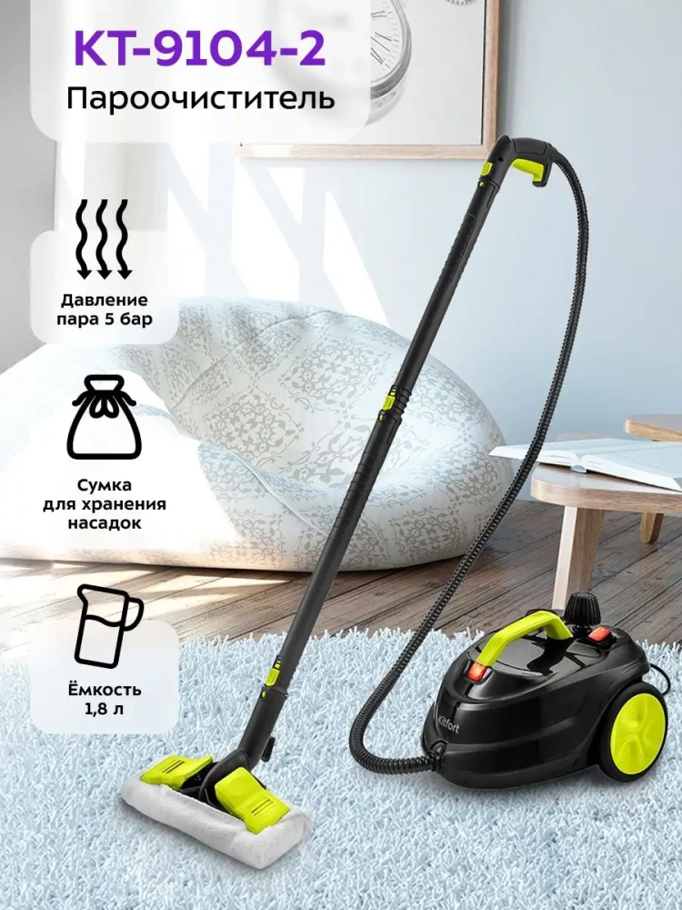 Пароочиститель Kitfort КТ-9104 — это многофункциональная бытовая техника для эффективной уборки дома. Этот мощный парогенератор с мощностью 2000 Вт обеспечивает качественное мытье и очистку различных поверхностей. Пароочиститель идеально подходит для уборки пола, кухни и других помещений. Благодаря паровой технологии, он легко справляется с загрязнениями, не оставляя следов и разводов.