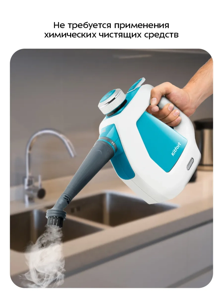 Пароочиститель Kitfort KT-918 - многофункциональный аппарат, способный заменить дезинфектор, стеклоочиститель и отпариватель для тканей. Используя силу горячего пара, пароочиститель великолепно очищает поверхности и обеспечивает деликатную глажку вещей. При этом прибор очень удобен в использовании, и работа с ним не требует от пользователя каких-то особых навыков и умений. Пароочиститель Китфорт предназначен для домашнего использования, а также использования вне дома, например, в офисах, магазинах, гостиницах и отелях, для уборки интерьеров, полов и поверхностей, находящихся как внутри, так и вне помещений. Устройство безопасно для здоровья человека и не приносит вреда окружающей среде. Горячий пар под давлением может удалять грязь, жир и известковые отложения с различных поверхностей, убивать патогенные микроорганизмы, бактерии и домашних клещей, которые могут вызывать аллергические реакции и астму.