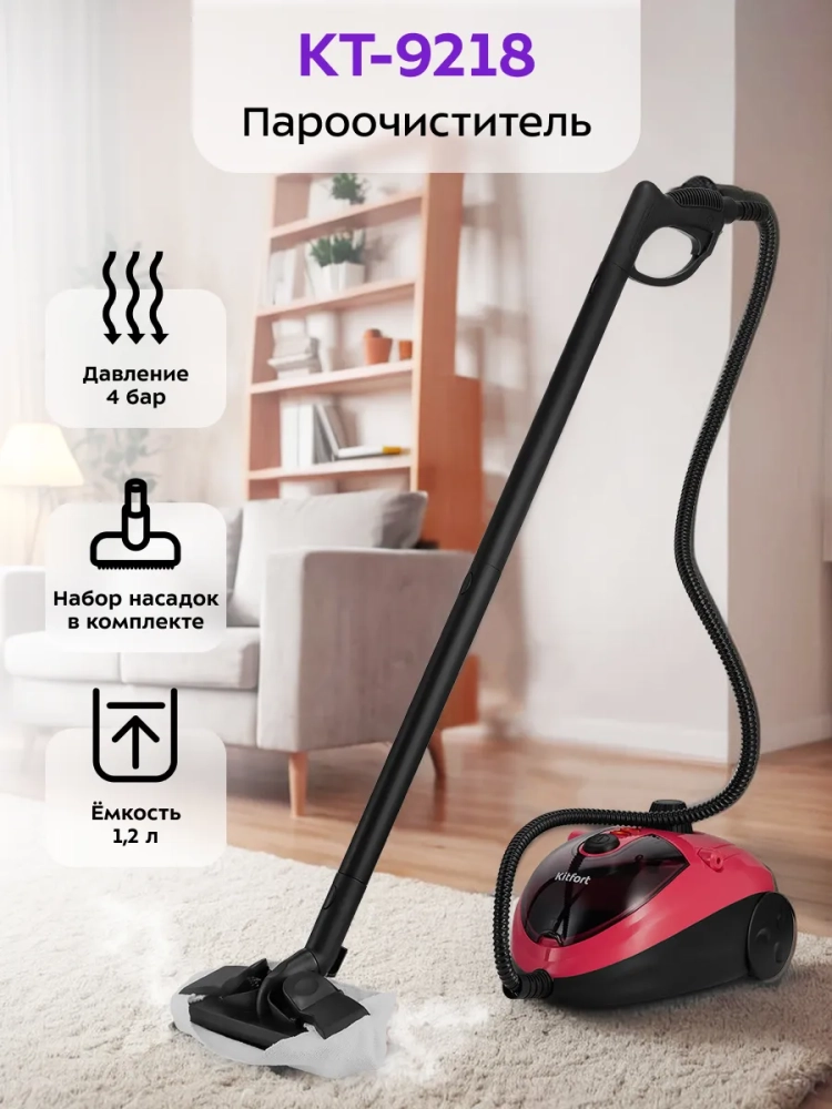 Пароочиститель Kitfort КТ-9218 — это не просто бытовая техника, а надежный помощник в поддержании чистоты и порядка. Он идеально подходит для мытья окон, очистки мебели и других труднодоступных мест. Использование пароочистителя позволяет сократить время уборки и улучшить качество жизни в доме.
