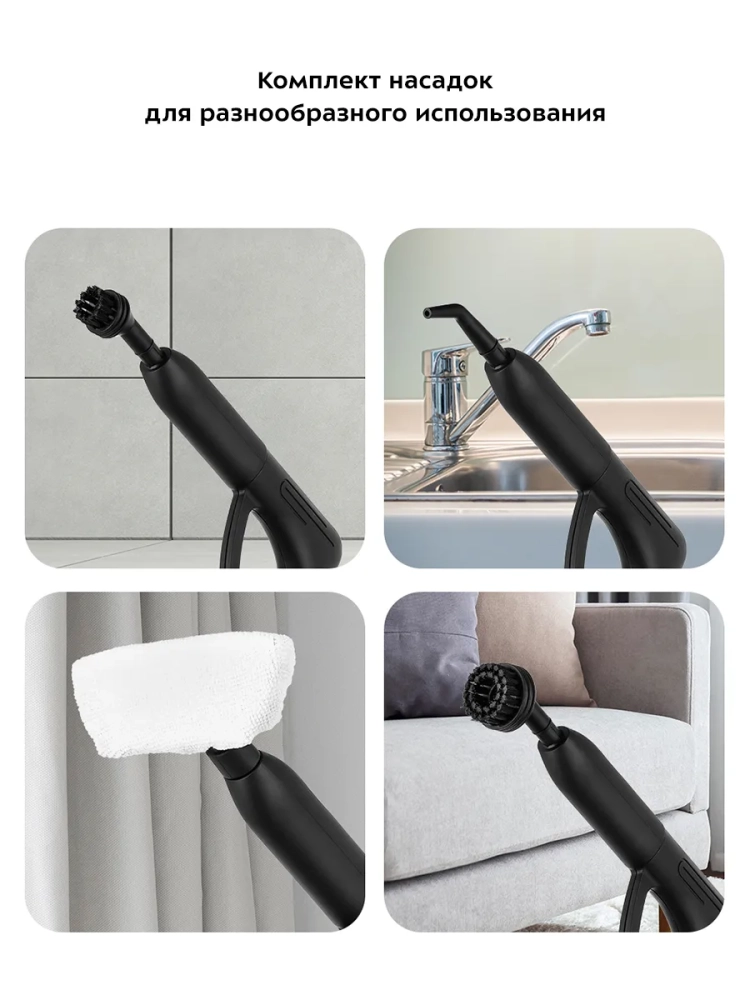 Пароочиститель оснащен множеством насадок, включая швабру и скребок, что делает его универсальным решением для уборки. Он подходит для чистки кафеля, швов между плитками, пластиковых и деревянных полов, а также для отпаривания тканей, таких как хлопковые и пеньковые занавески. Благодаря этому устройству, уборка дома становится более эффективной и быстрой.