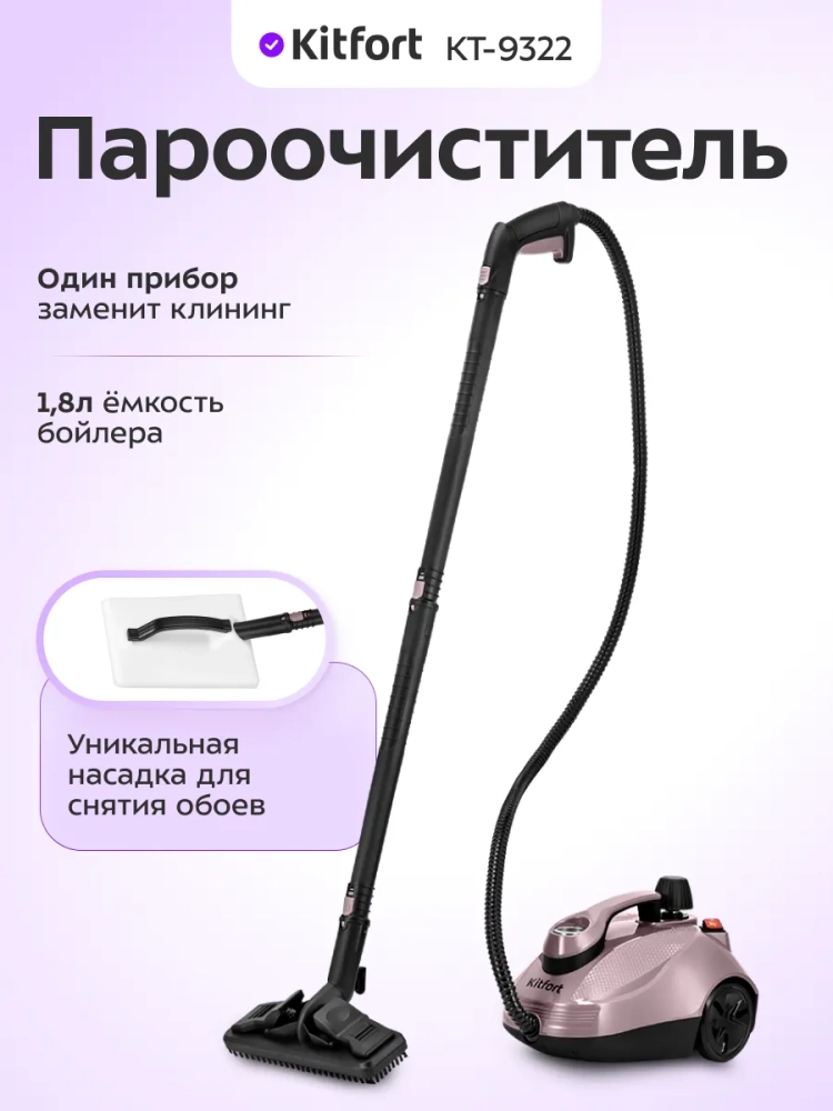 Пароочиститель Kitfort КТ-9322 предназначен для уборки интерьеров, полов и поверхностей, находящихся как внутри, так и вне помещений, а также для отпаривания тканей.