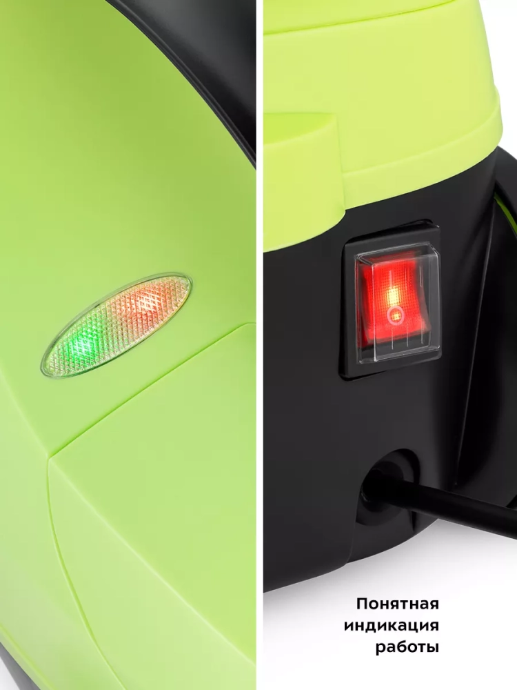 На корпусе пароочистителя есть ручка для переноски, которая также является держателем парового пистолета при хранении прибора. Колеса позволяют с легкостью перемещать пароочиститель, не поднимая его. Большое количество насадок в комплекте поможет очистить труднодоступные или сильнозагрязненные поверхности. Под крышкой пароочистителя предусмотрено место для хранения стальной и нейлоновой щеток и крышка бойлера.
