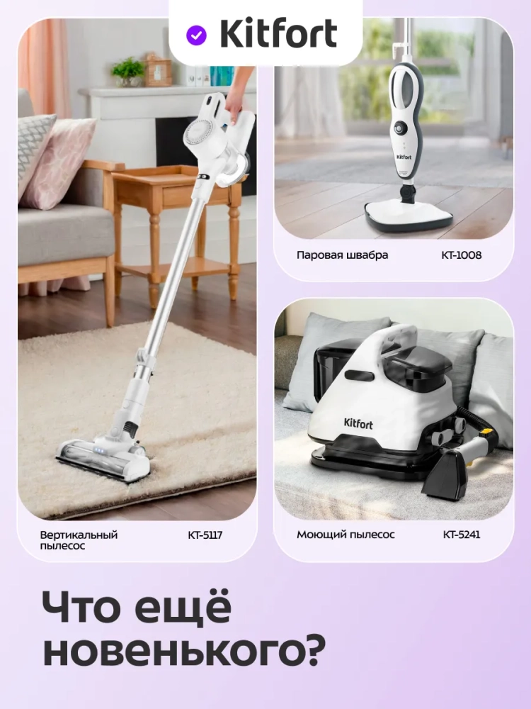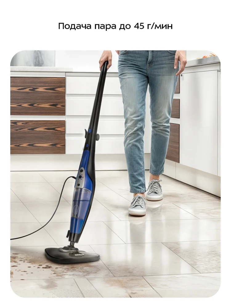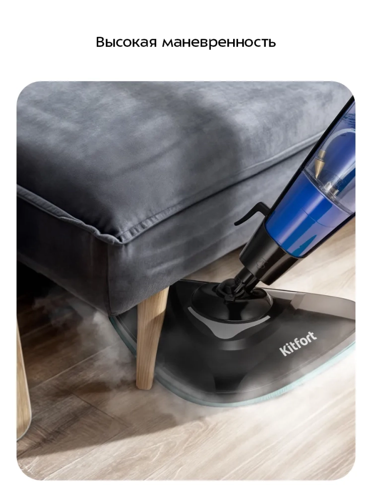 Паровая швабра Kitfort КТ-1089 — универсальное устройство, которое поможет избавиться от пыли и грязи с помощью мощной струи пара, а также продезинфицирует обрабатываемую поверхность. При помощи специальных насадок из комплекта КТ-1089 очистит напольные покрытия, раковину и плиту на кухне, зеркала, окна и плитку в ванной без каких-либо химических средств — исключительно паром.