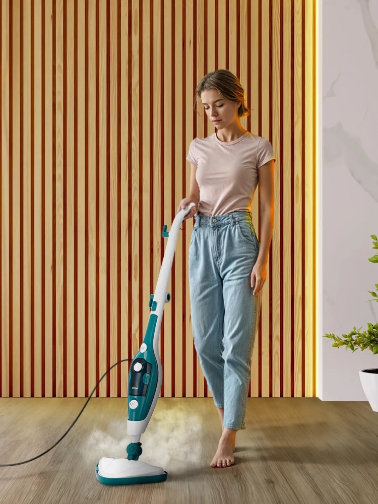 Эта паровая швабра оснащена универсальными насадками, которые позволяют проводить уборку в ванной, на кухне и в других помещениях. Насадки включают в себя круглую щетку для чистки уголков и мягкой мебели, скребок для окон и зеркал, а также насадку для напольного покрытия. Пароочиститель эффективно справляется с задачами по чистке кафельной плитки и других твердых поверхностей, обеспечивая идеальную чистоту.
