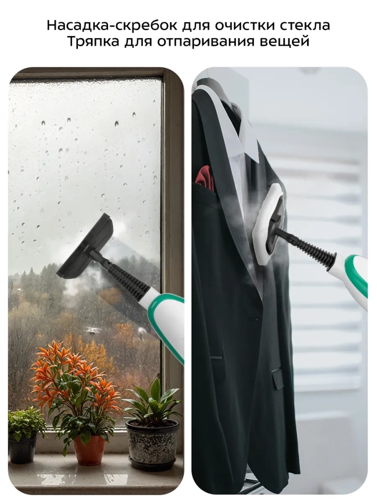 Чтобы помыть окна, зеркала и кафельную плитку, присоедините к паровой швабре насадку для отпаривания со скребком для стекла и прибор можно будет использовать как стеклоочиститель.