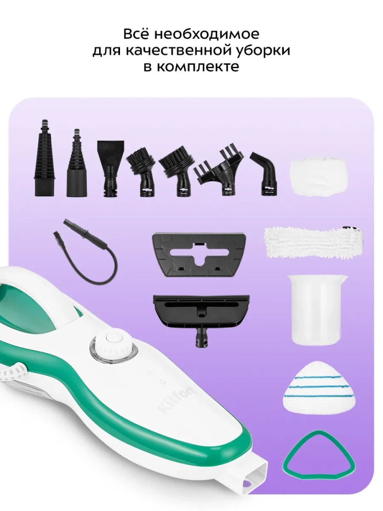 Паровая швабра «2 в 1» Kitfort КТ-3937 — универсальное устройство, которое поможет избавиться от пыли и грязи с помощью мощной струи пара, а также продезинфицирует обрабатываемую поверхность.
