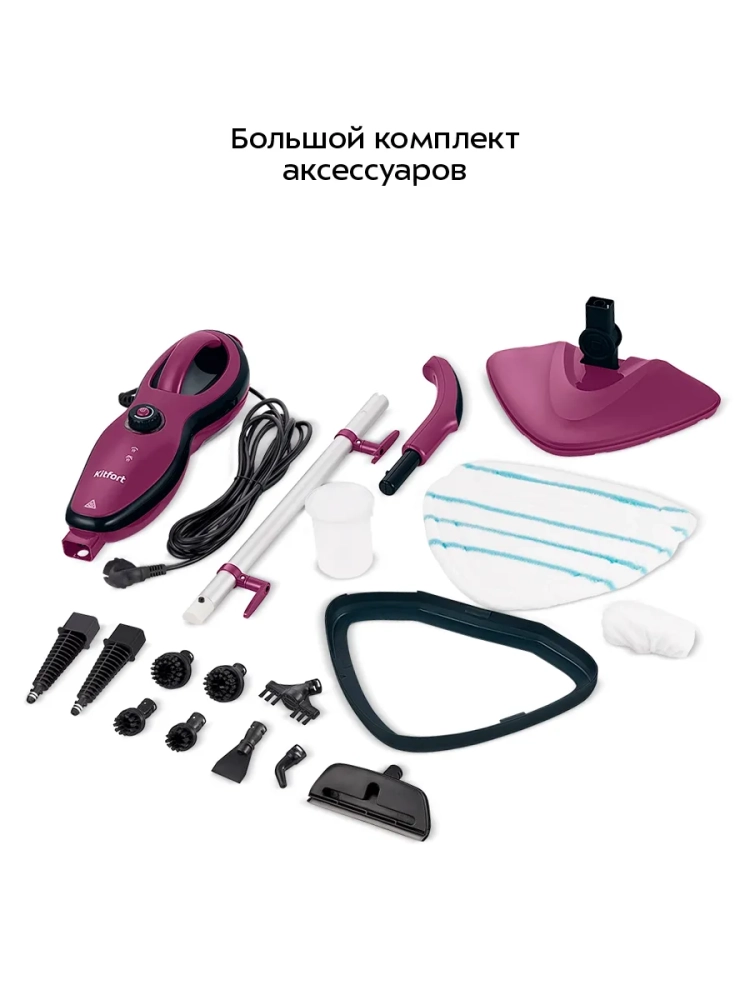 Паровая швабра «2 в 1» Kitfort КТ-3938 — универсальное устройство, которое поможет избавиться от пыли и грязи с помощью мощной струи пара, а также продезинфицирует обрабатываемую поверхность.