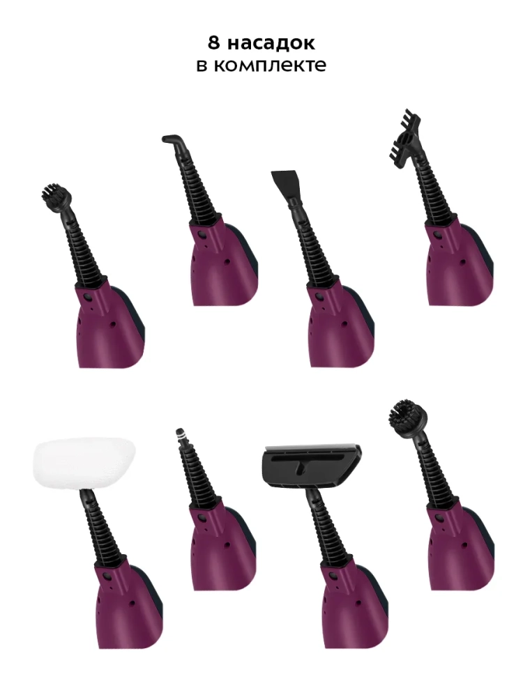 Если отсоединить ручку и щетку, то паровая швабра превращается в ручной пароочиститель. Им можно чистить паром различные поверхности и предметы: кафель и швы между плитками, сантехнику для кухни и ванны, духовки, плиты, СВЧ печи, жировые и известковые отложения. Для усиления механического воздействия в комплекте идут нейлоновые щетки и скребок.
