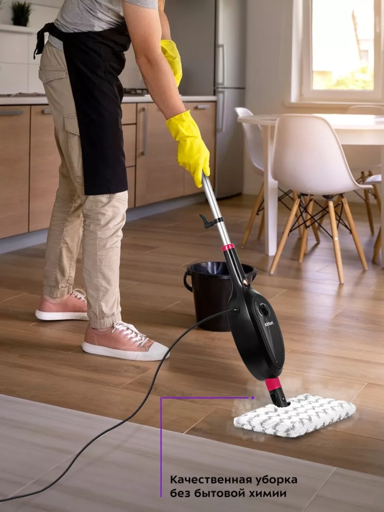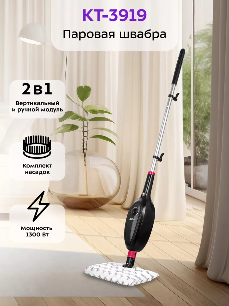 Паровая швабра КТ-3919 проста в использовании. Уборка с ней будет проходить быстро и легко.
