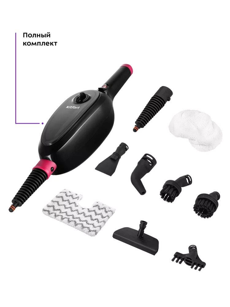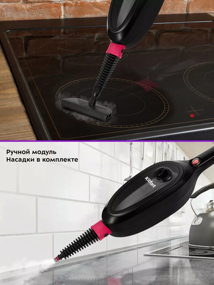 Паровая швабра Kitfort КТ-3919 — универсальное устройство, которое поможет избавиться от пыли и грязи с помощью мощной струи пара, а также продезинфицирует обрабатываемую поверхность. При помощи специальных насадок из комплекта КТ-3919 очистит напольные покрытия, раковину и плиту на кухне, зеркала, окна и плитку в ванной без каких-либо химических средств, исключительно паром.