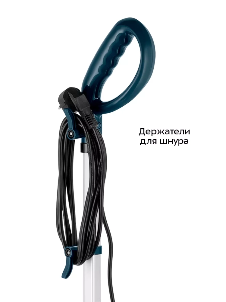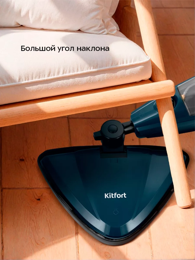 Паровая швабра обладает функцией вертикальной парковки и большим углом наклона при уборке, который поможет убрать пространство под мебелью. В устройстве предусмотрены держатели для шнура. Удлинительная трубка съемная, что обеспечивает компактное хранение.