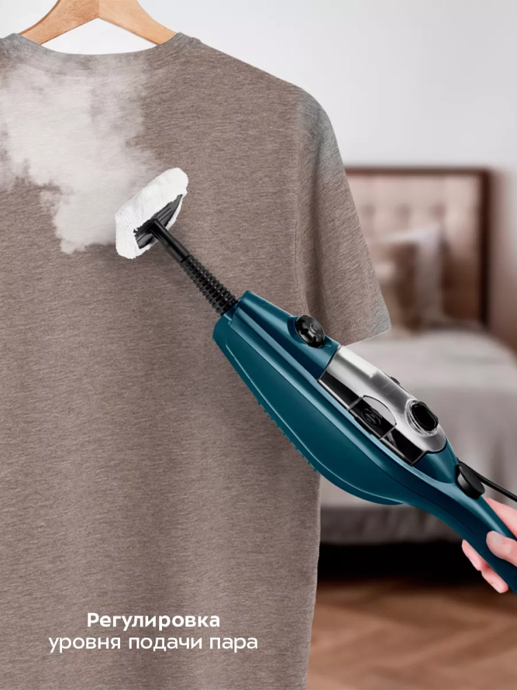 Регулятор подачи пара позволяет плавно настраивать интенсивность выходящего пара. Это очень удобно при очистке разных типов поверхностей с разным уровнем загрязнения. Чем сильнее загрязнение, тем больше пара потребуется.