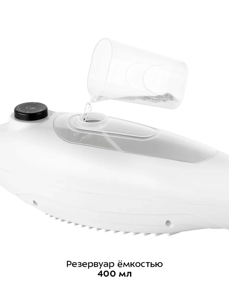 Устройство оснащено резервуаром для воды емкостью 400 мл, что позволяет производить непрерывную уборку до 10–15 минут в зависимости от интенсивности выходящего пара.