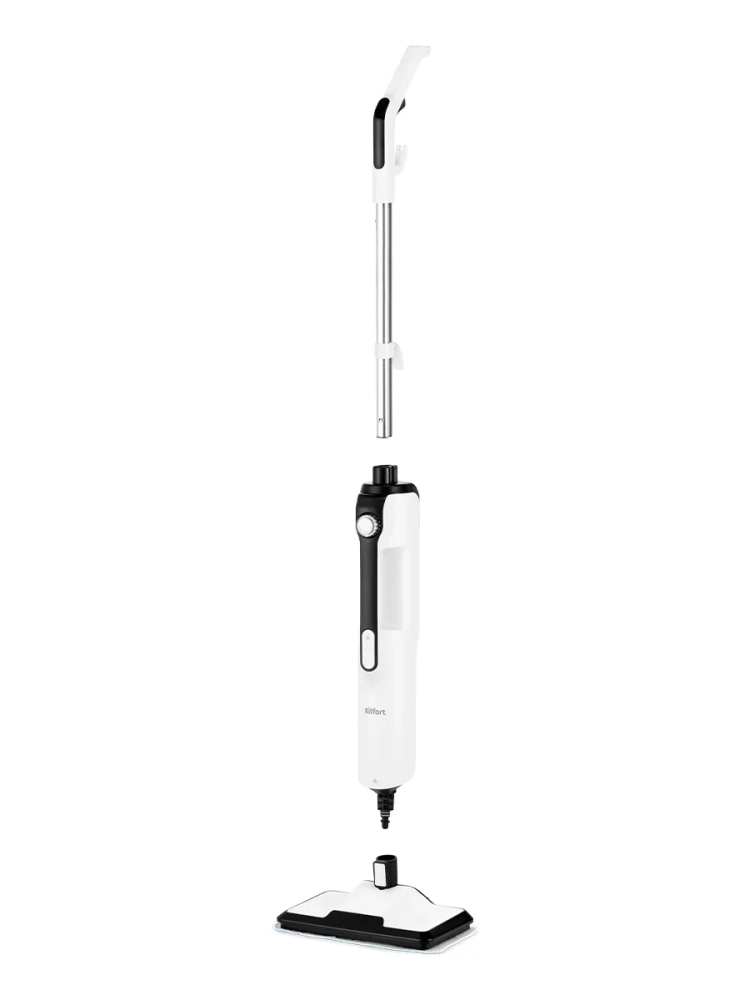 Паровая швабра Китфорт КТ-1019 проста в использовании: выберете уровень подачи пара регулятором и зажмите кнопку подачи пара.