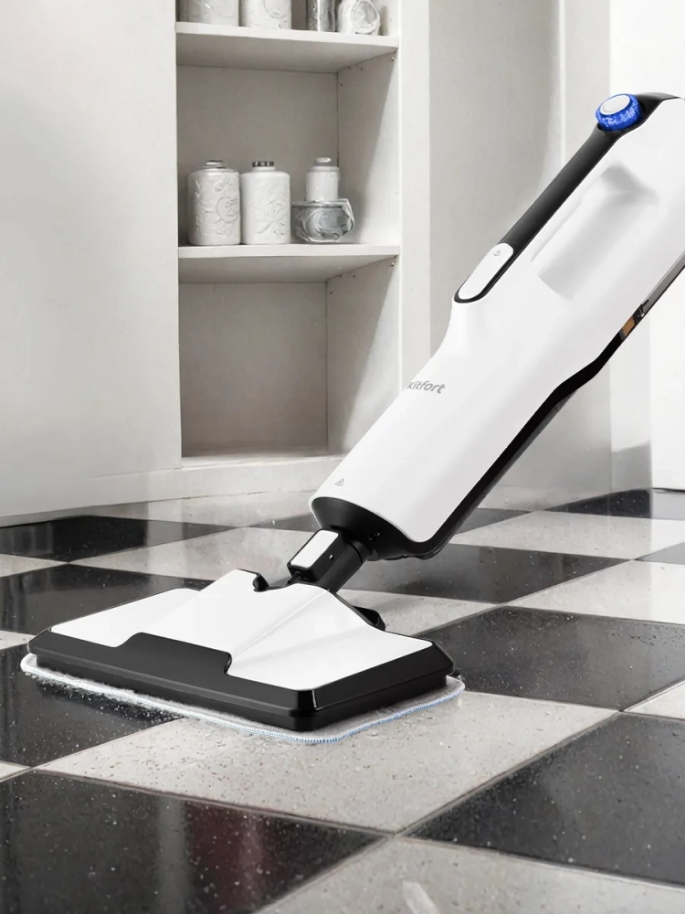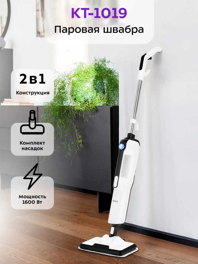 Паровая швабра «2 в 1» Kitfort КТ-1019 — универсальное устройство, которое поможет избавиться от пыли и грязи с помощью мощной струи пара, а также продезинфицирует обрабатываемую поверхность. КТ-1019 очистит раковину и плиту на кухне, зеркала и мебель без каких-либо химических средств, исключительно паром.