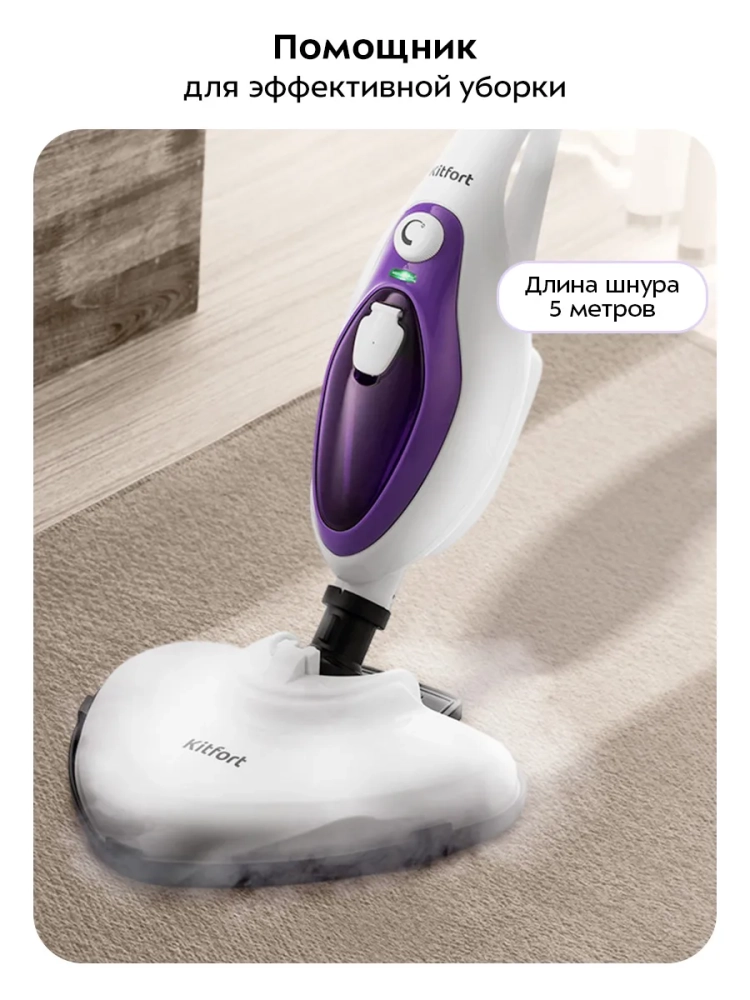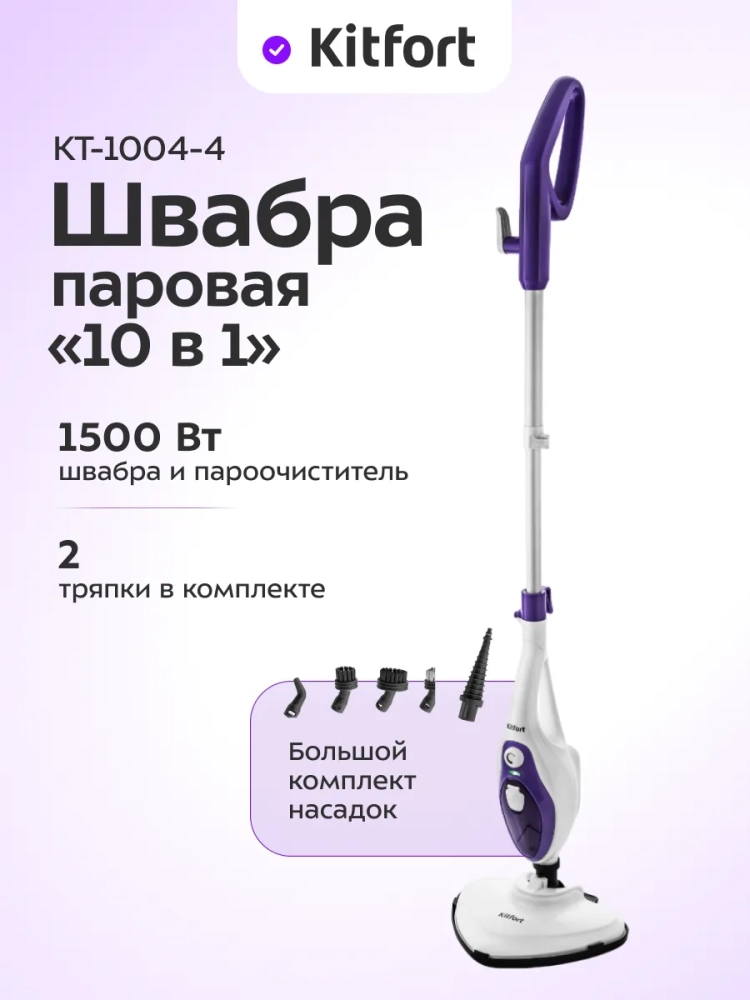 Эта умная техника от Kitfort — идеальный выбор для тех, кто ценит простоту и эффективность уборки. С её помощью вы сможете поддерживать чистоту и порядок в доме без лишних усилий. Швабра с насадками КТ-1004 — это надежный помощник в борьбе с загрязнениями, который сделает уборку легкой и приятной.