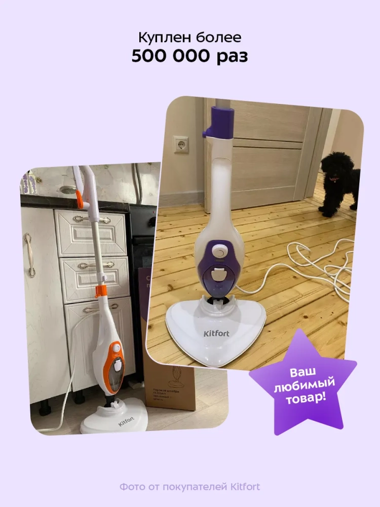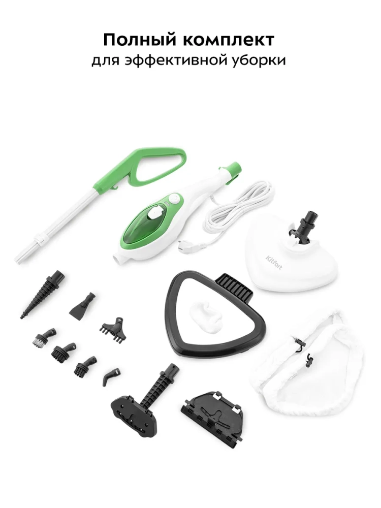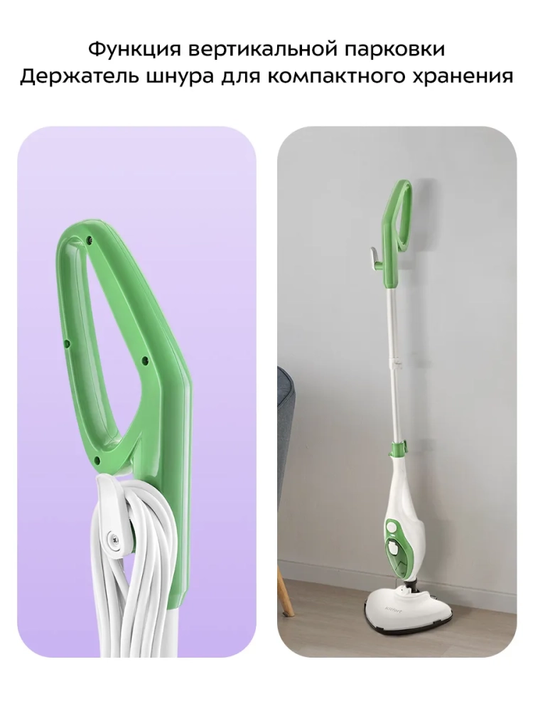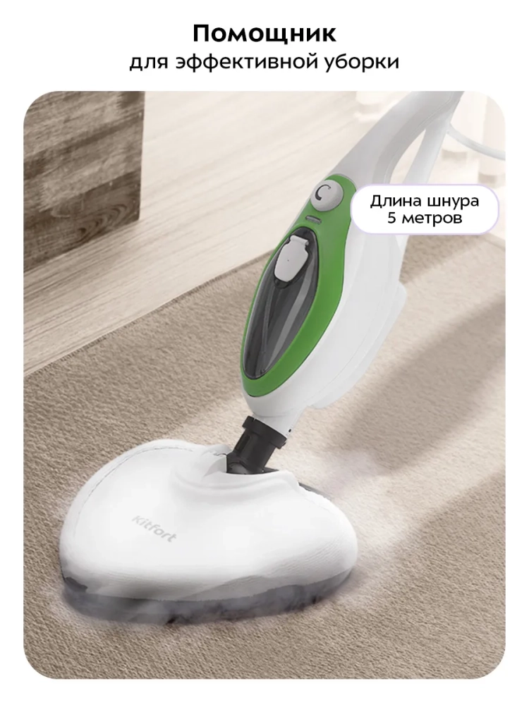Паровая швабра с насадками для пола КТ-1004 от Kitfort — это многофункциональная электрическая техника, которая станет незаменимым помощником в вашем доме. Этот мощный бытовой очиститель для уборки сочетает в себе функции пароочистителя, стеклоочистителя и отпаривателя. Идеальный подарок на любой случай: на Новый год, 23 февраля, 8 марта, день рождения, свадьбу или юбилей! Благодаря высокой мощности парогенератора 1500 Вт, парошвабра обеспечивает глубокую очистку и дезинфекцию различных поверхностей. Паровой моющий поток эффективно размягчает загрязнения на полу, включая деревянные и кварцвиниловые покрытия, а также кафель и швы между плитками. В комплект входят различные насадки: скребок для окон и ворсовые щетки расширяют возможности использования устройства. Съемная удлинительная ручка позволяет трансформировать швабру в компактный ручной пароочиститель для чистки кухонной техники или ванной сантехники. Это делает её идеальной для удаления жировых и известковых отложений. Паровая швабра также может использоваться как отпариватель одежды — горячий пар разглаживает складки на тканях занавесок или обивки мебели, уничтожая пылевых клещей и другие микроорганизмы. Проводной дизайн обеспечивает стабильную работу без необходимости частой подзарядки. Эта универсальная техника подходит не только для мытья полов: она справляется с чисткой стеклянных поверхностей и панели благодаря специальной насадке со скребком, что позволяет быстро мыть окна без разводов с помощью пара. Два режима работы обеспечивают гибкость при уборке разных типов загрязнений. Kitfort КТ-1004 — это надежное решение для тех, кто ценит простоту ухода за домом без лишних усилий.