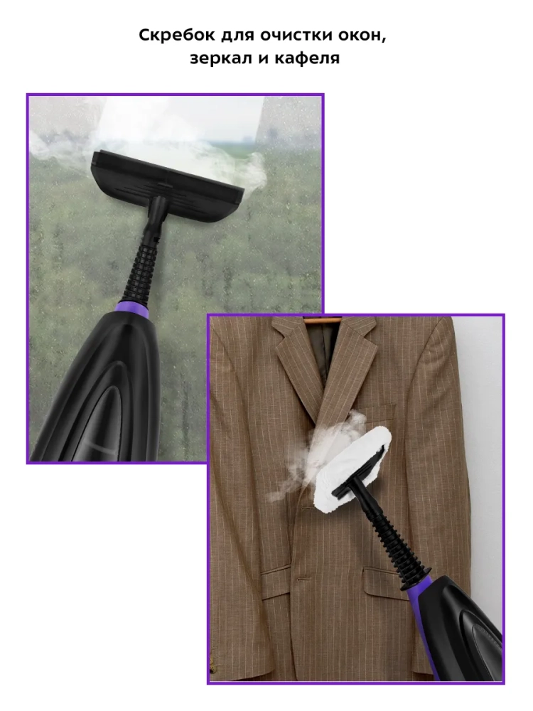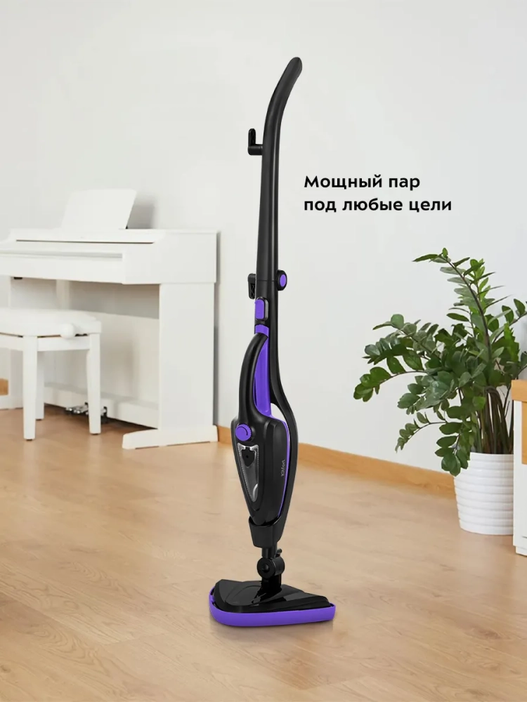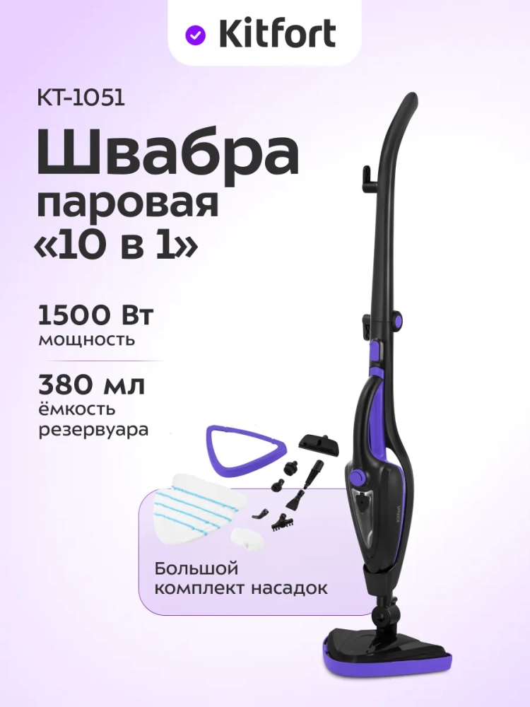 Паровая швабра Kitfort КТ-1051 — это универсальный бытовой очиститель, который станет незаменимым помощником в вашем доме. С помощью мощного парогенератора и насадок, она эффективно справляется с уборкой и мытьем различных поверхностей. Мыть пол с ней намного проще. Паровой поток размягчает загрязнения, превращая их в эмульсию, которую легко удалить тряпкой. Это делает устройство идеальным для аллергиков, так как не требует использования химических средств. Эта электрическая техника оснащена резервуаром на 380 мл для воды, что позволяет проводить непрерывную уборку от 10 до 20 минут. Пароочиститель Kitfort КТ-1051 способен очистить раковины и плиты на кухне, зеркала и плитку в ванной комнате без применения химии — только паром! Высокая температура пара способствует эффективному удалению жировых отложений и других стойких загрязнений. Конструкция гаджета "2 в 1" включает ручной модуль с насадками для более детальной очистки труднодоступных мест. Вы можете отпаривать шторы или мягкую мебель благодаря функции отпаривателя. Регулировка уровня подачи пара позволяет настроить интенсивность работы устройства под ваши нужды. Парошвабра обладает функцией вертикальной парковки и большим углом наклона щетки для пола на шаровом шарнире, что обеспечивает маневренность при уборке под мебелью. В комплекте предусмотрена рамка для ковра — это облегчает скольжение по ворсистым покрытиям. Электрошвабра Kitfort КТ-1051 — это мощный инструмент для поддержания чистоты вашего дома без лишних усилий!