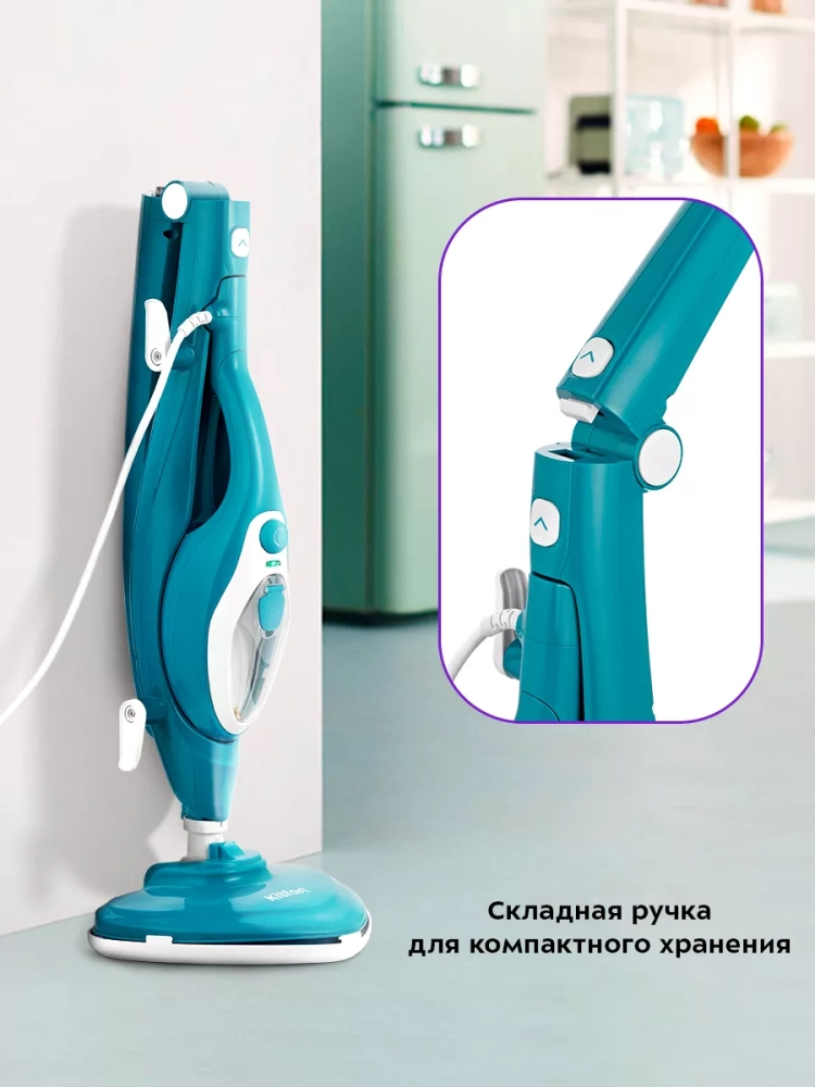 Паровая швабра Kitfort КТ-1081 — это универсальный бытовой гаджет, который станет незаменимым помощником в вашем доме. С помощью мощного парогенератора и различных насадок, она эффективно справляется с уборкой и дезинфекцией поверхностей без использования химических средств. Паровой поток проникает глубоко в загрязнения, размягчая их для легкого удаления тряпкой. Это делает устройство идеальным выбором для чистки для аллергиков. Эта парошвабра оснащена резервуаром на 380 мл, что позволяет проводить непрерывную уборку от 10 до 15 минут в зависимости от интенсивности подачи пара. Регулятор подачи пара помогает настроить мощность струи под конкретные задачи: чем сильнее загрязнение, тем больше пара потребуется. Конструкция "2 в 1" включает ручной модуль с разнообразными насадками для очистки большинства вещей в доме: окна, шторы, ковер и мягкая мебель. В комплекте с очистителем есть скребок и щетки из латунных и нейлоновых материалов для механического воздействия на сложные загрязнения. Мыть поверхности станет намного удобнее. Насадка для отпаривания с тряпкой позволяет отпаривать одежду и чистить обивку мебели. Электрошвабра также оснащена функцией вертикальной парковки и складной ручкой корпуса, что облегчает хранение устройства. Держатели для шнура предусмотрены на корпусе техники. Kitfort КТ-1081 — это не просто пароочиститель или электрический отпариватель; это многофункциональная техника для эффективного мытья пола и других поверхностей дома. Легкость использования делает её отличным выбором как для ежедневной уборки дома, так и при необходимости быстрой очистки перед приходом гостей.