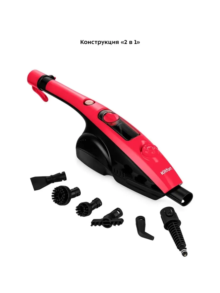 Конструкция «2 в 1» предусматривает наличие ручного модуля, который удобно использовать с насадками. С помощью насадок можно очистить большинство вещей в доме: легко отмыть окна, почистить шторы и мягкую мебель. Нейлоновые щетки и скребок эффективно очищают сложные загрязнения с помощью механического воздействия. Для очистки окон, зеркал и кафельной плитки предусмотрена специальная насадка для отпаривания со скребком. Ее можно использовать с тряпкой для отпаривания, чтобы отпаривать одежду и чистить обивку мягкой мебели. Струйная и угловая насадка помогут очистить щели, углы и другие труднодоступные места.