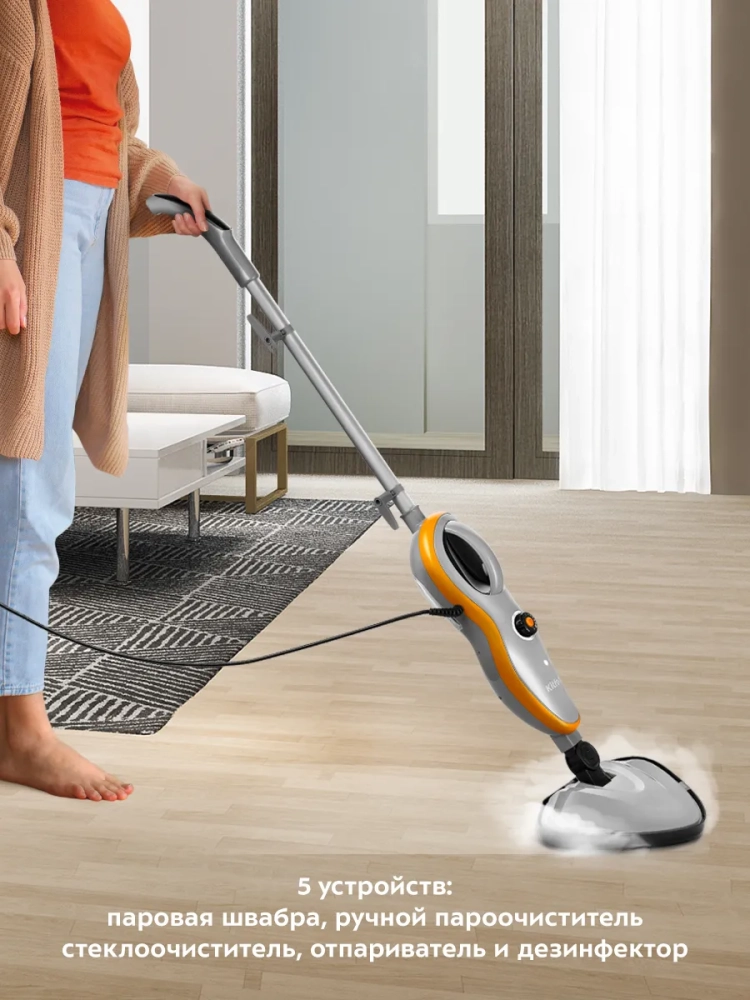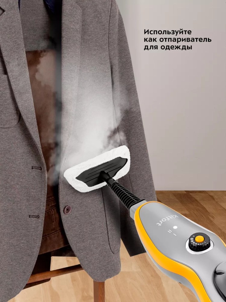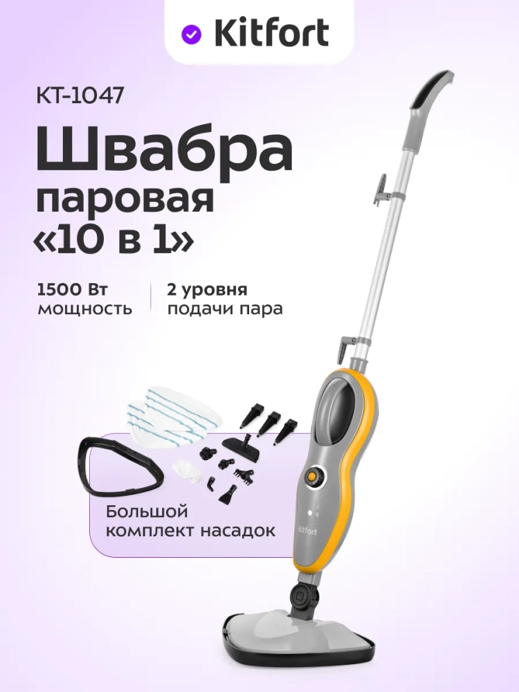 Паровая швабра Kitfort КТ-1047 – универсальное устройство, которое поможет избавиться от пыли и грязи с помощью мощной струи пара, а также продезинфицирует обрабатываемую поверхность. Паровая швабра представляет из себя парогенератор с удлиненной ручкой и щеткой для пола.