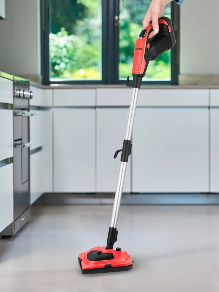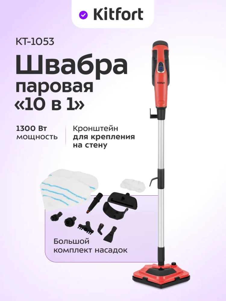 Паровая швабра «2 в 1» КТ-1053 — универсальное устройство, которое поможет избавиться от пыли и грязи с помощью мощной струи пара, а также продезинфицирует обрабатываемую поверхность. Паровая швабра очистит раковину и плиту на кухне, зеркала и мебель без каких-либо химических средств, исключительно паром.