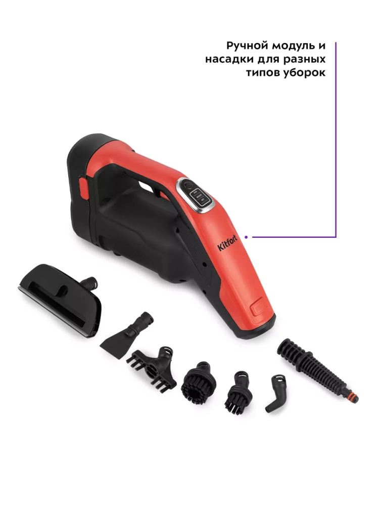 Конструкция «2 в 1» предусматривает наличие ручного модуля, который удобно использовать с насадками. С помощью насадок можно очистить большинство вещей в доме: легко отмыть окна, почистить шторы и мягкую мебель. Плоская и круглая нейлоновые щетки эффективно очищают сложные загрязнения с помощью механического воздействия. Для очистки окон, зеркал и кафельной плитки предусмотрена специальная насадка для отпаривания со скребком. Ее можно использовать с тряпкой для отпаривания, чтобы отпаривать одежду и чистить обивку мягкой мебели.