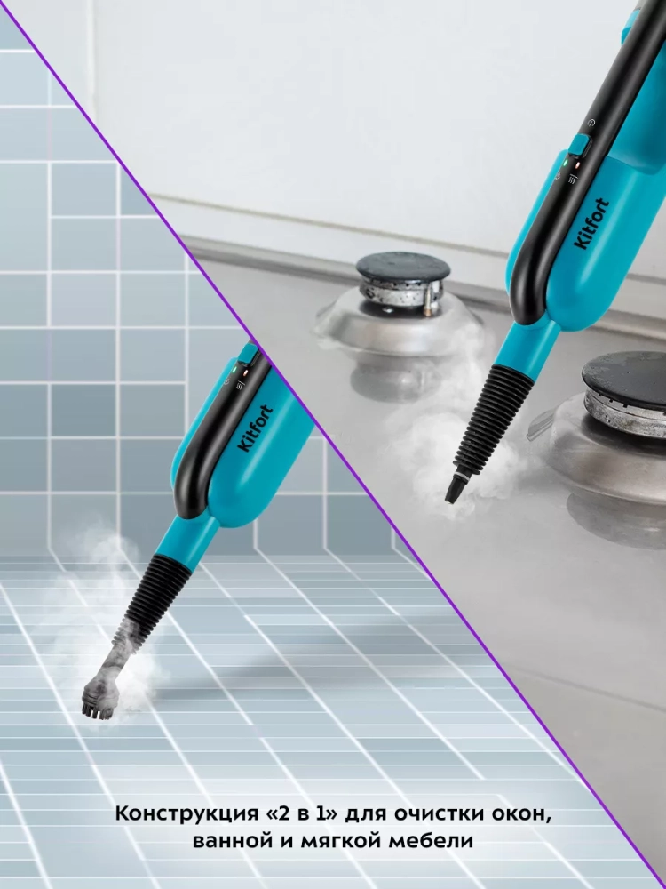 Паровая швабра Kitfort КТ-1078 (2 в 1) — универсальное устройство, которое поможет избавиться от пыли и грязи с помощью мощной струи пара, а также продезинфицирует обрабатываемую поверхность. КТ-1078 очистит напольные покрытия, раковину и плиту на кухне без каких-либо химических средств, исключительно паром.